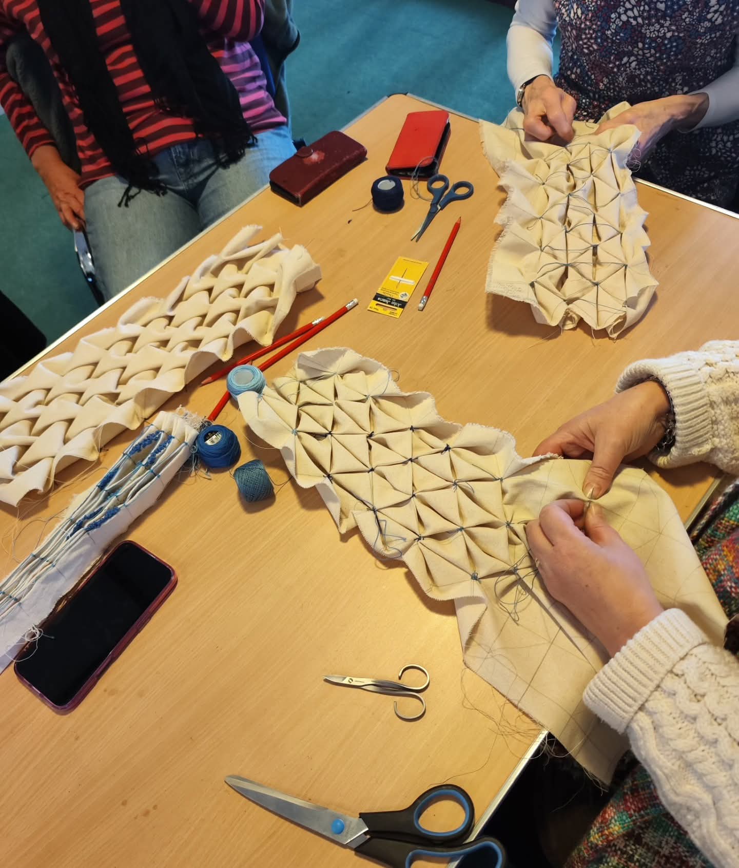 Along with smocking a North Tawton building, Annie is teaching a series of smocking workshops has collaborated with Berlin/Exeter artist Sam Godfrey to research images depicting the history of smocking and its contemporary uses. These will be shown during the talk at the workshops and in future collaborations in connection with the project (stay tuned!). On Sunday 11th January Annie will teach the honeycomb stitch that Ishe is working with to Smock the Building and on Saturday 17th January, Annie will teach the bird beak stitch.
