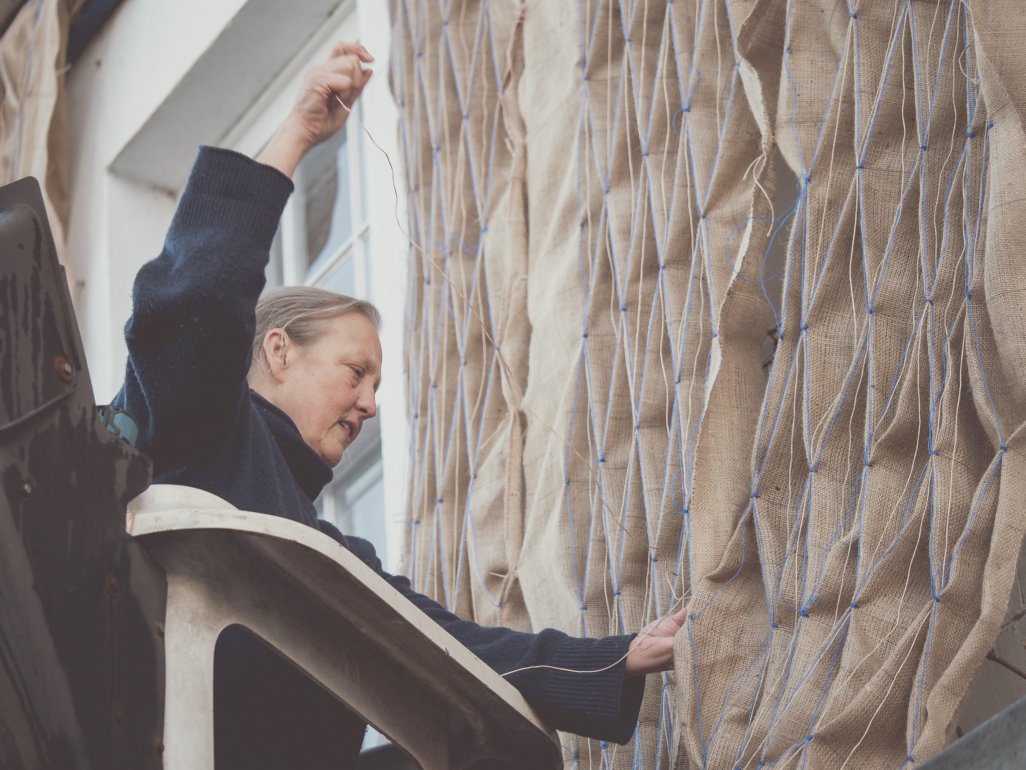 We're very excited to be pioneering the first Smocked Building Project by New York based artist, Annie Coggan, who will be covering the facade of Ruth Smith Gallery with an enormous site-specific textile installation using smocked hessian.